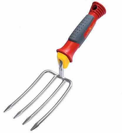 The WOLF-GartenĀ® Flower Fork hand tool is an ideal garden tool for breaking up, cultivating and blending soils, fertilizer or compost, thanks to its four heavy-duty steel tines.