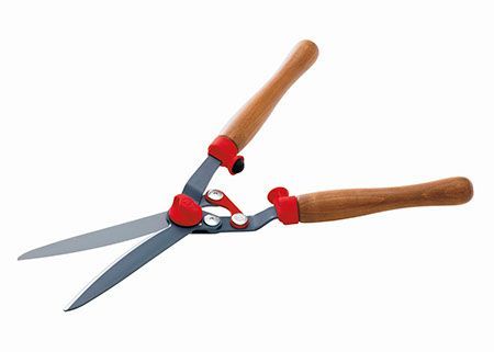 These shears feature extra-sharp, straight, non-stick blades that easily cut all types of hedges and shrubs.
