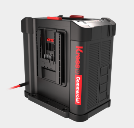 Kress Commercial chargers provide the industry's fastest charge times! The Kress KAC840 30 A dual port charger can charge the Kress 60 V 4 Ah CyberPack in 12 minutes and the Kress 60 V 11 Ah CyberPack in only 25 mintes!